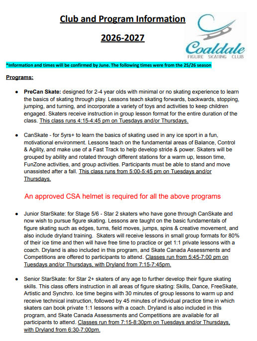 Watch our Facebook Page for the most current information! CFSC on Facebook 2026-2027 Year at a glance is coming in June!